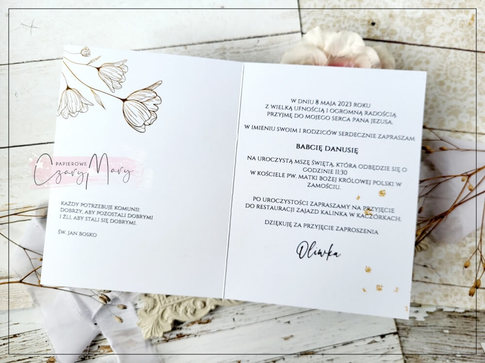 Zaproszenie jest w pełni personalizowane i w komplecie z kopertą.