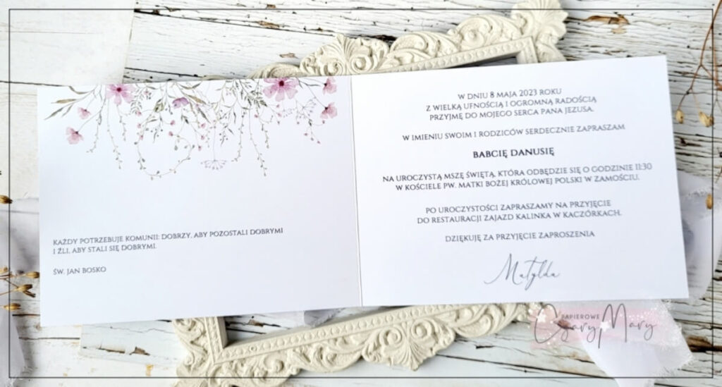 Zaproszenie jest w pełni personalizowane i w komplecie z kopertą.